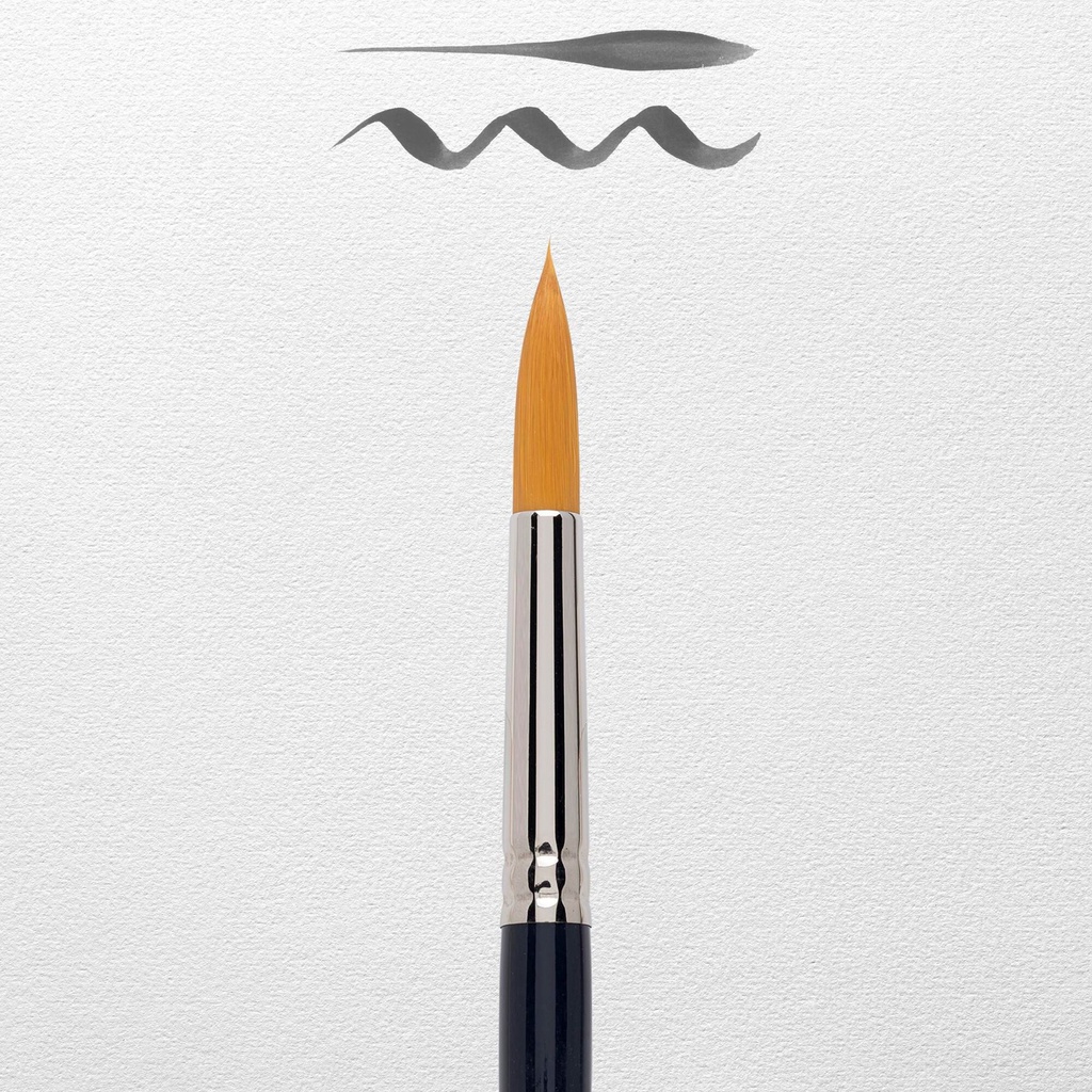 Crafted with care and shaped by hand, this water color brush has a flexible hair bundle resistant to wear. The golden synthetic hair bundle can absorb a large amount of water and has a round shape with a very fine tip for detailed working. This brush has a hair bundle width of 8.1 mm