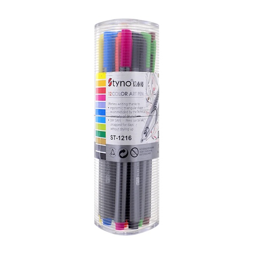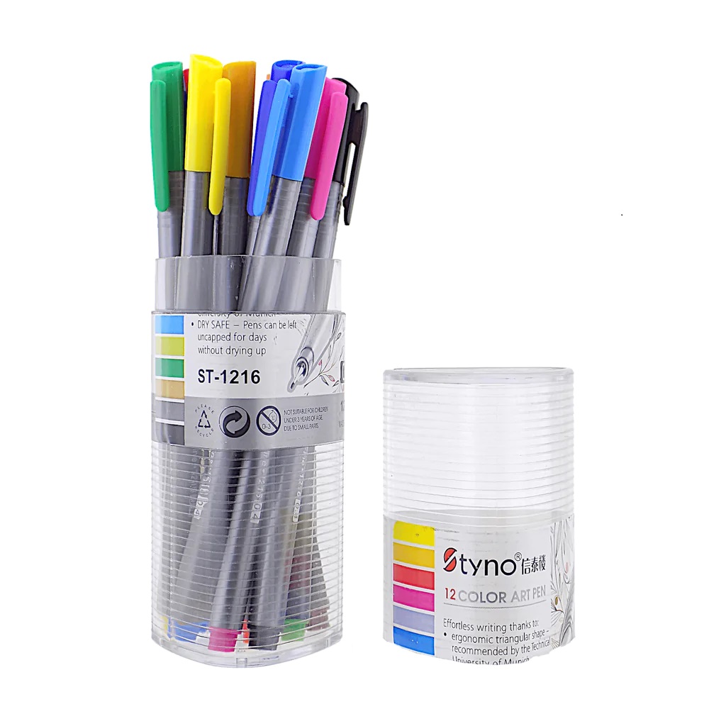 Styno - Metal Clad Tip Fineliner (ST-1216) - 0.4 mm Set of 12 Multi Color