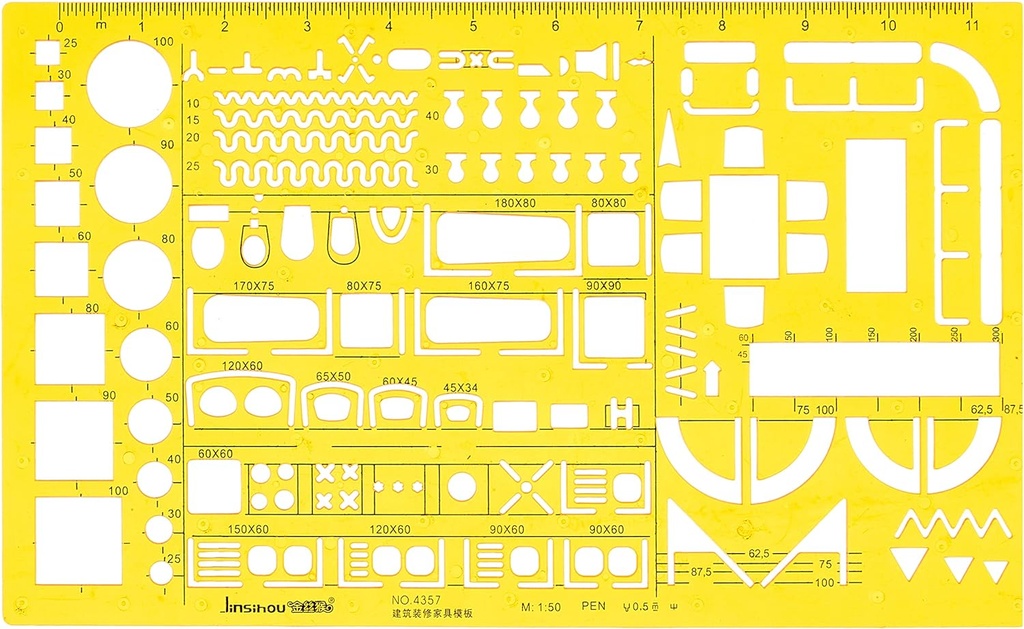 Jinsihou no 43575 - 1: 50 Interior Design and Furniture Templates, Drafting Tools and Ruler Shapes for Architecture, Drafting Tools, Architecture Supplies, Drafting Templates