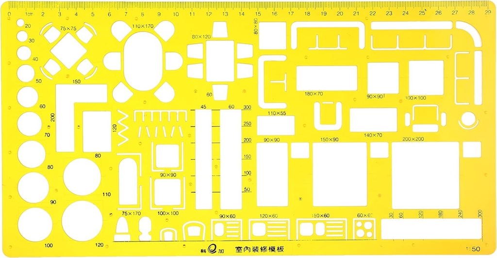 Jinsihou no 4370 - 1: 50 Interior Design and Furniture Templates, Drafting Tools and Ruler Shapes for Architecture, Drafting Tools, Architecture Supplies, Drafting Templates