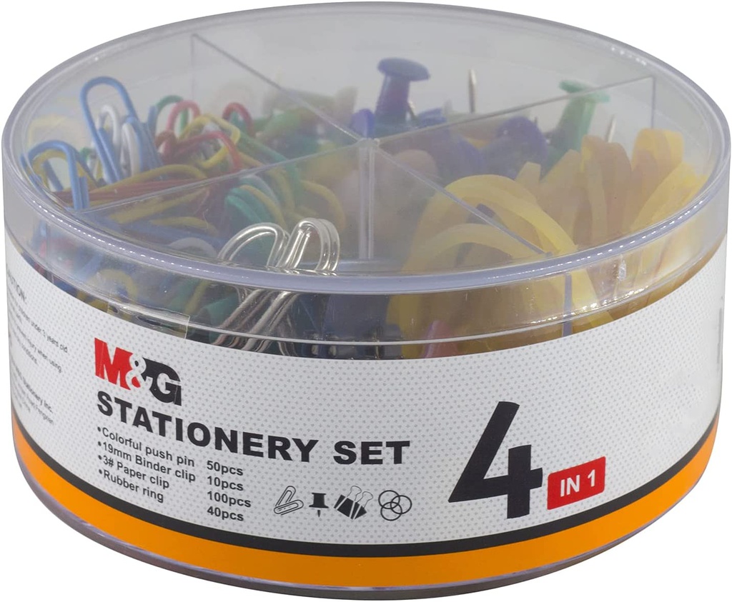 MG Chenguang - Binder Clips, Paper Clips, Rubber Rings and Push Pins - Stationery Set 4 In 1 box
