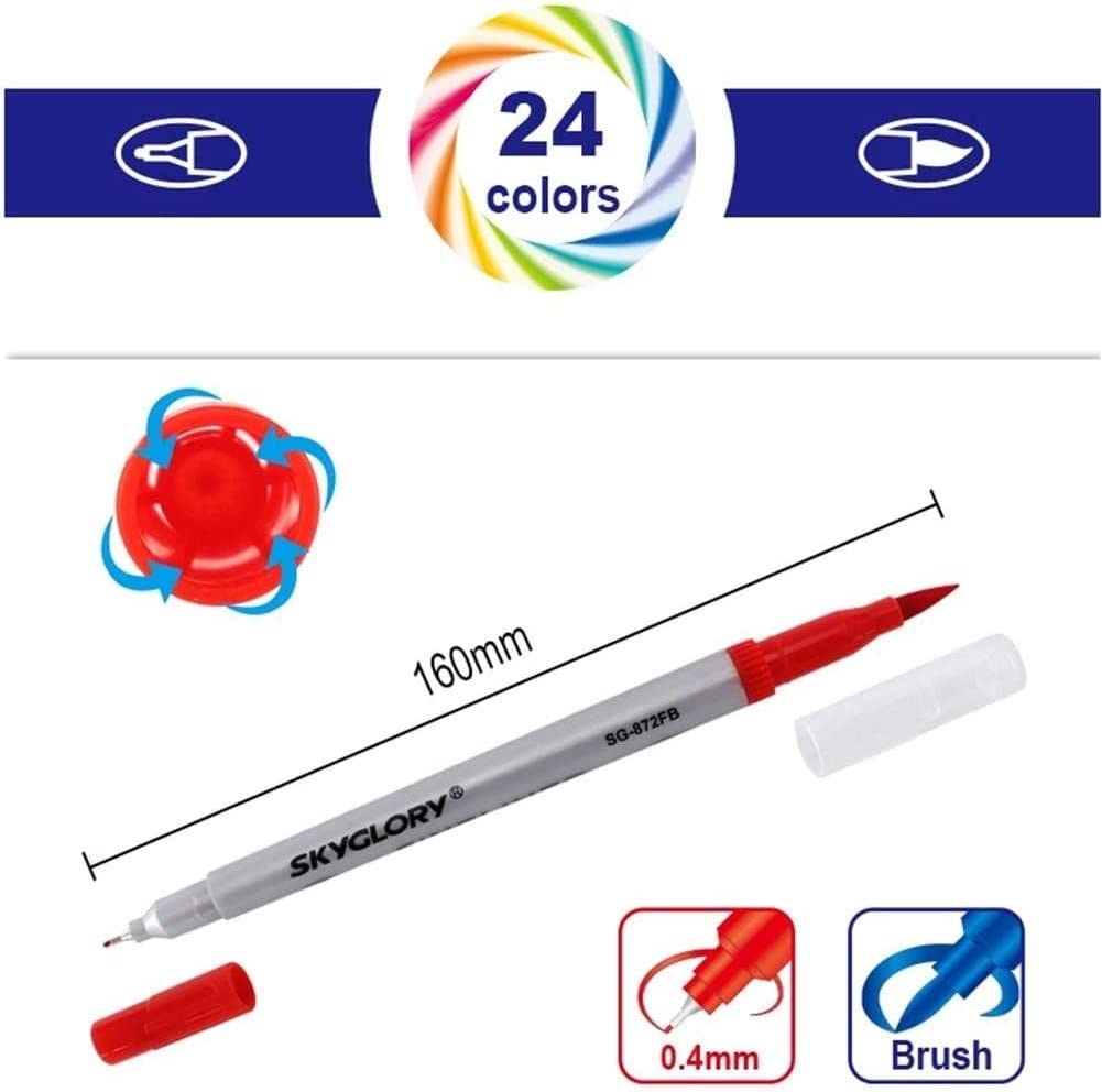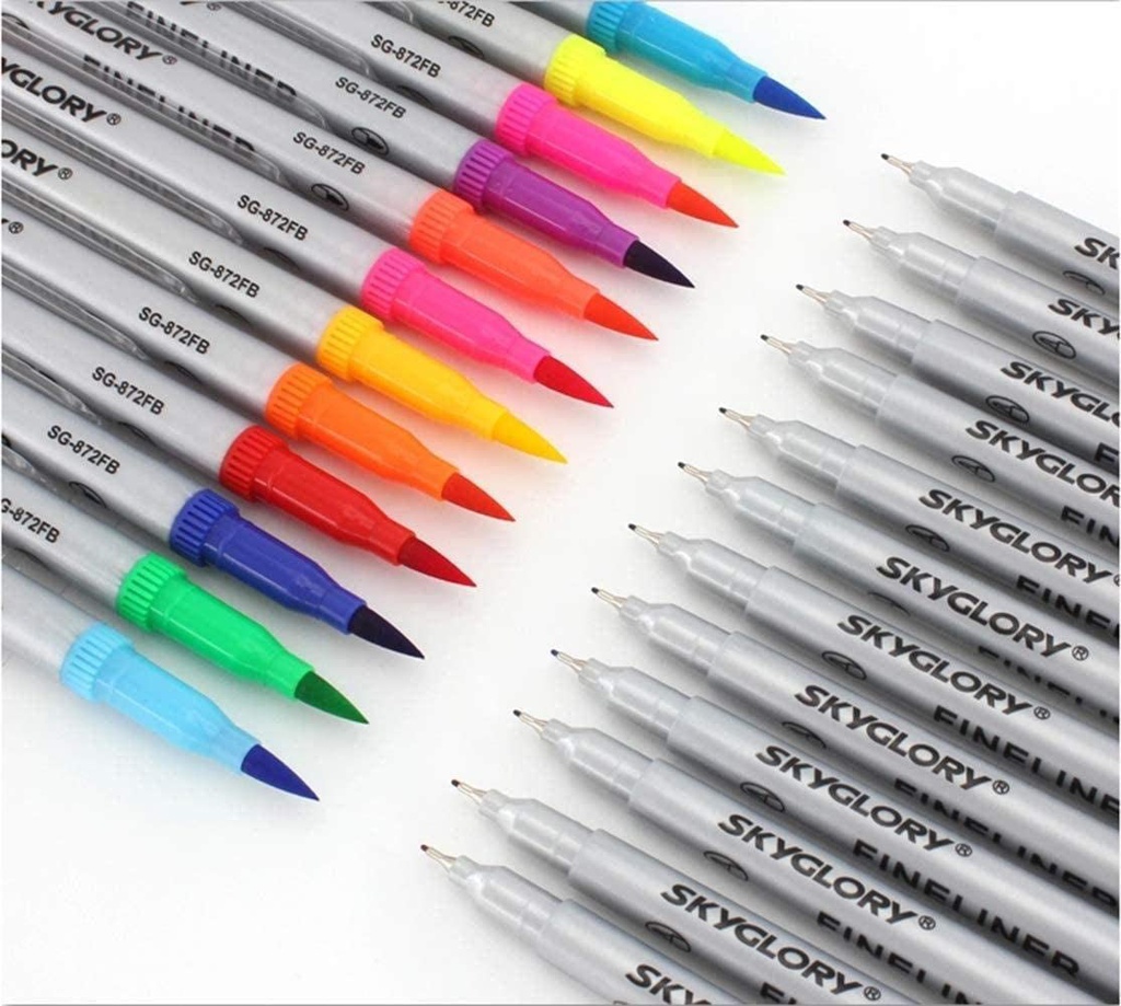 Sky Glory - Dual Brush Pen and Fineliner set - Long pen - 24 colors