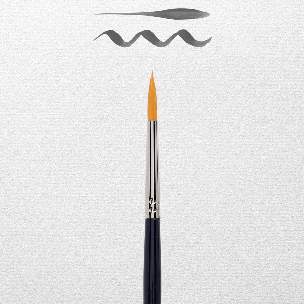 Crafted with care and shaped by hand, this water color brush has a flexible hair bundle resistant to wear. The golden synthetic hair bundle can absorb a large amount of water and has a round shape with a very fine tip for detailed working. This brush has a hair bundle width of 3.8 mm