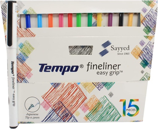 Tempo - Fine liner easy grip set - 0.3 mm Japanese tip - 15 colored pen