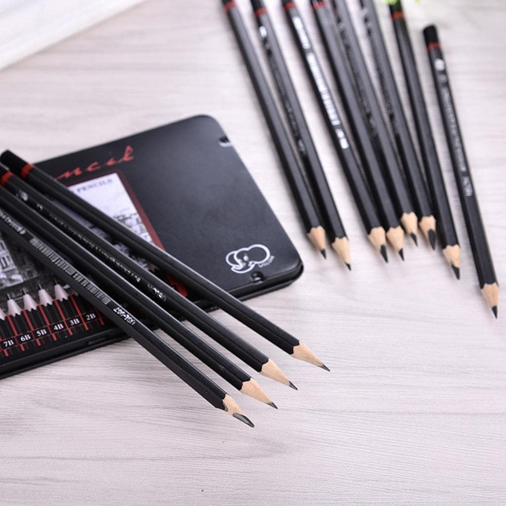 Uslon Professional Drawing Sketching Pencil Set 12 Pieces Graphite Pencils In Metal Case (8B - 7B - 6B - 5B - 4B - 3B - 2B- B - F -HB- H - 2H)