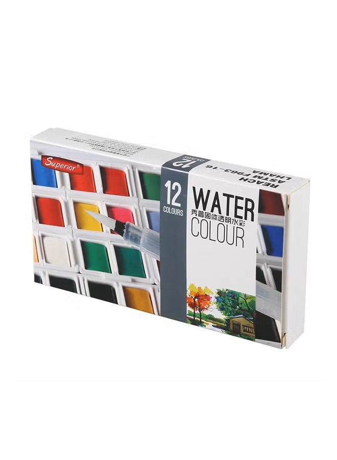 Watercolor set 12 pans colors - with brush - each pan 5 gm