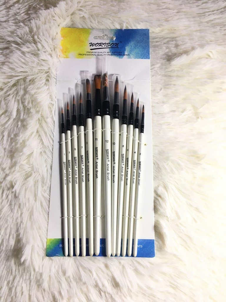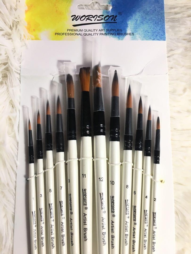 Worison set of 12 brushes - white handls - hair for gouashe and poster colors
